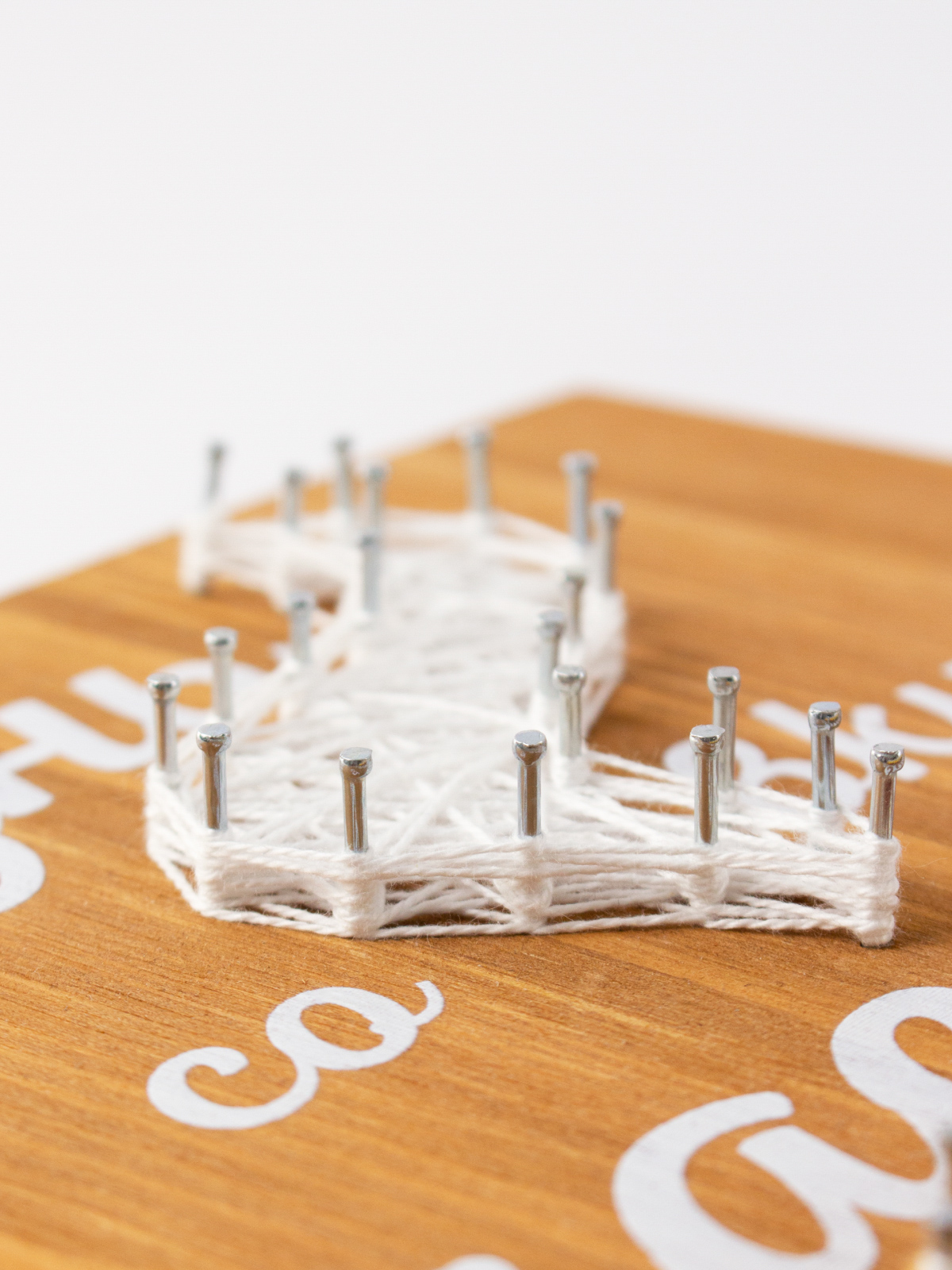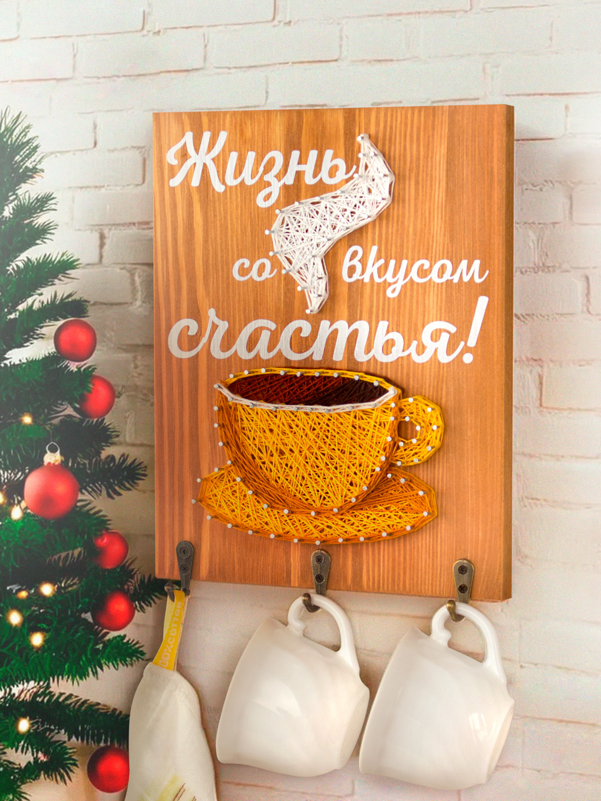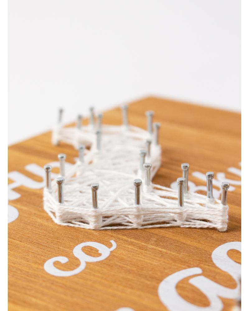 Картина из нитей с милой надписью станет приятным акцентом в декоре дома, а металлические крючки настенные добавят практичности красивому декору.
