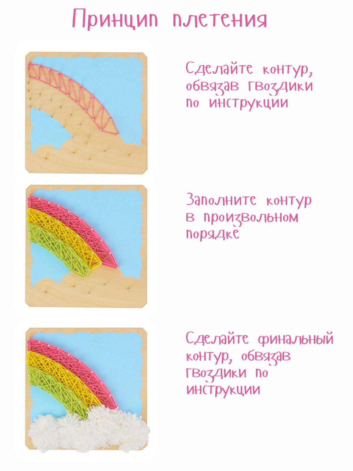 Наборы серии «Цвик-арт» будут радовать детей от 8-ми лет и взрослых. В комплект входят: важные указания по технике безопасности, инструкция, деревянная основа, покрытая эко-краской, комплект гвоздей, катушки с нитями, держатель для гвоздей, чудо-вилка для создания помпонов, подставка для картины.