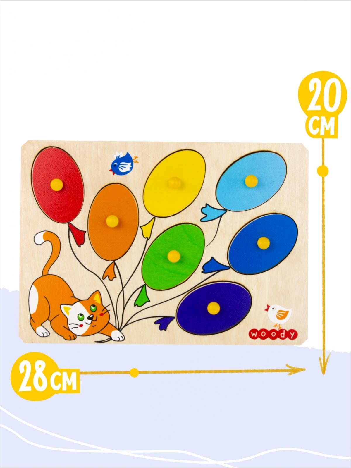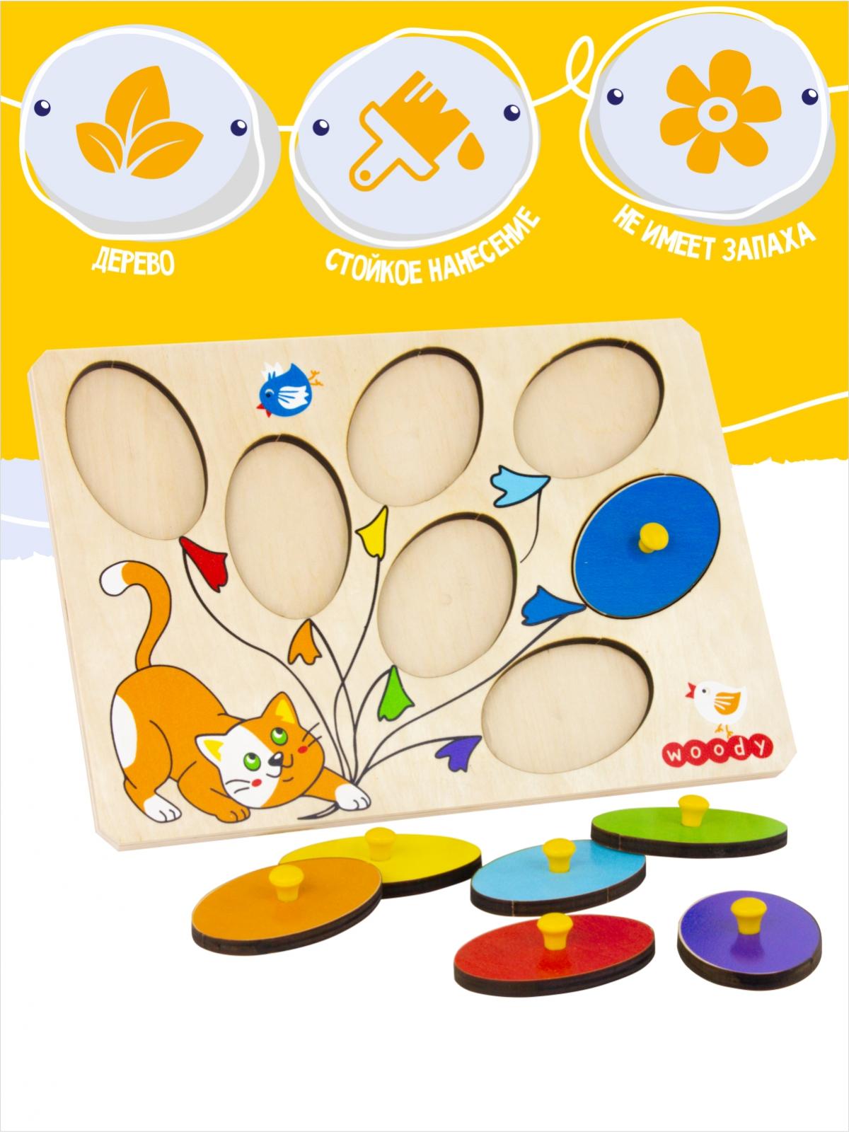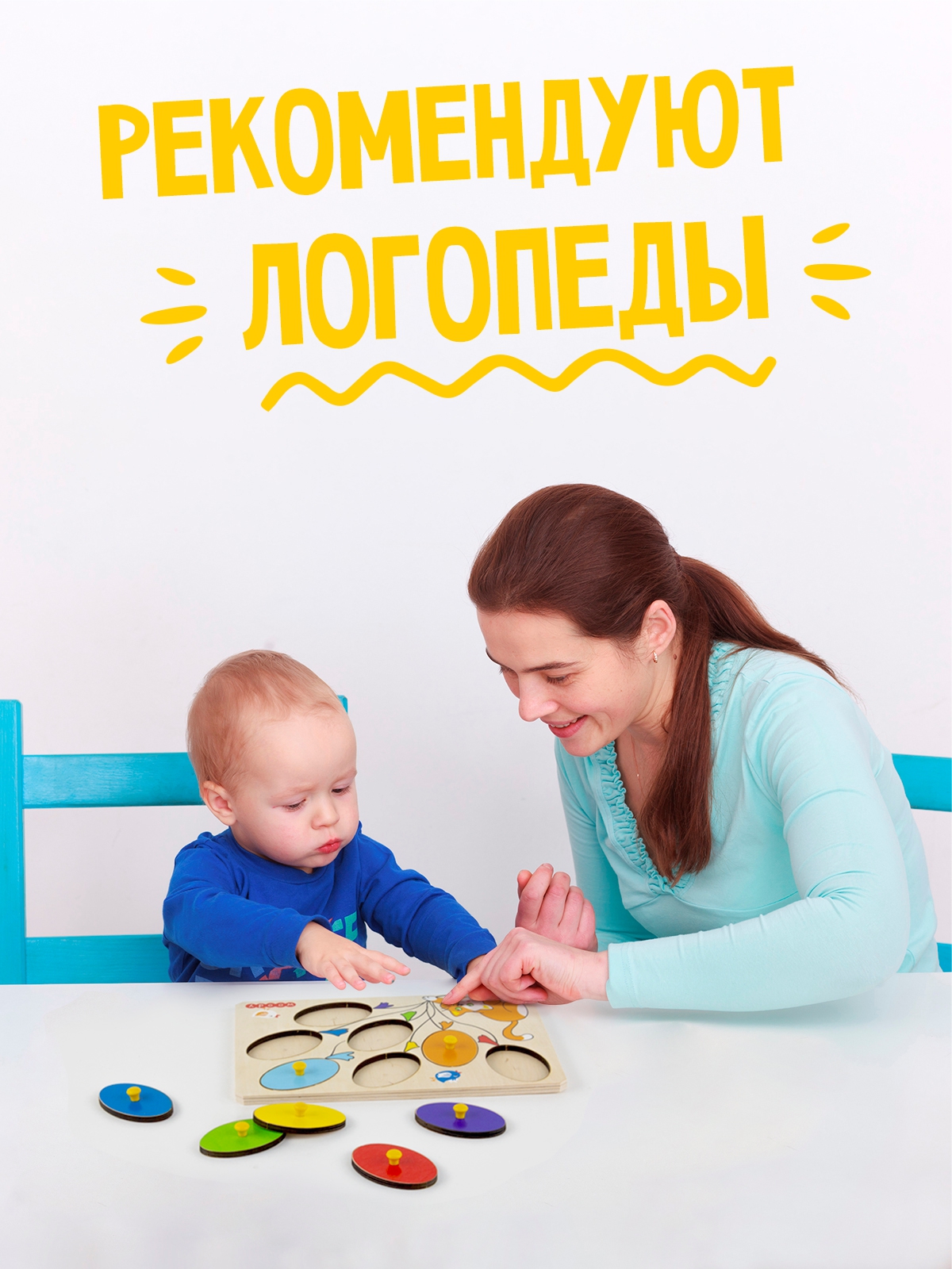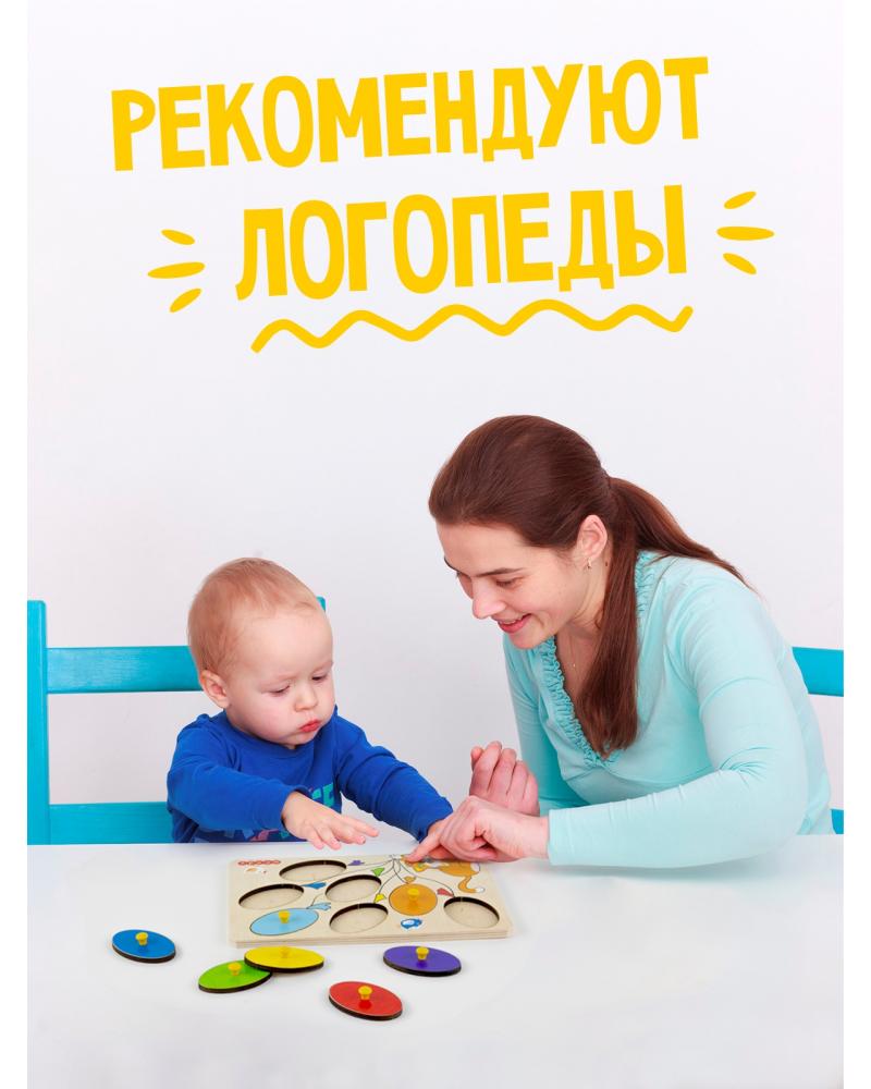 Пазл-вкладыш с удобными держателями для детской ручки развивает у малыша понятия о цвете: какой это цвет? как он выглядит? какие предметы этого цвета есть у нас в квартире?
