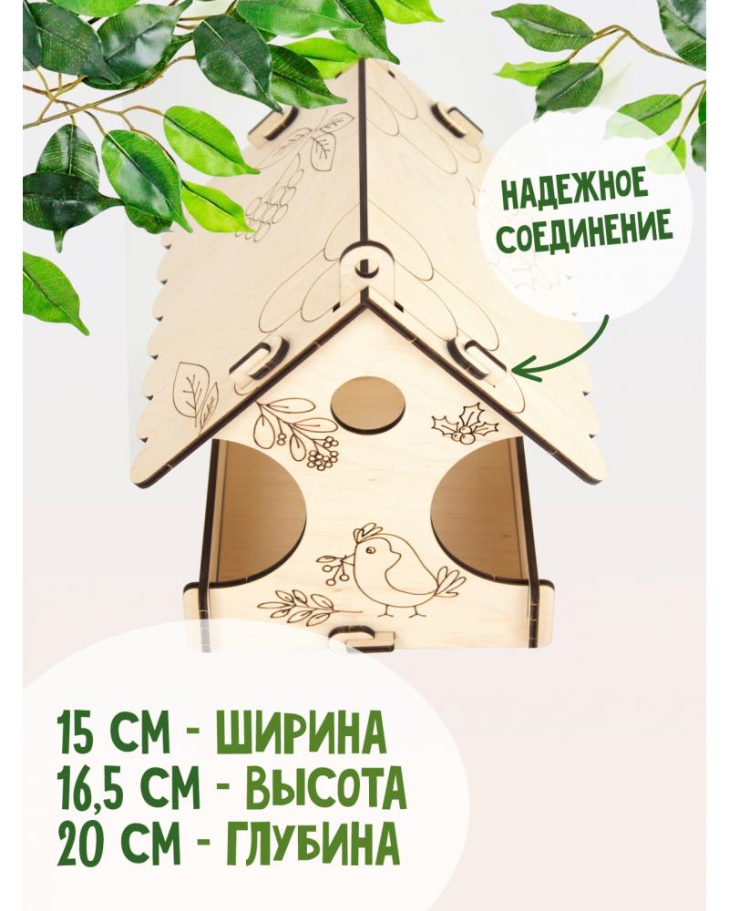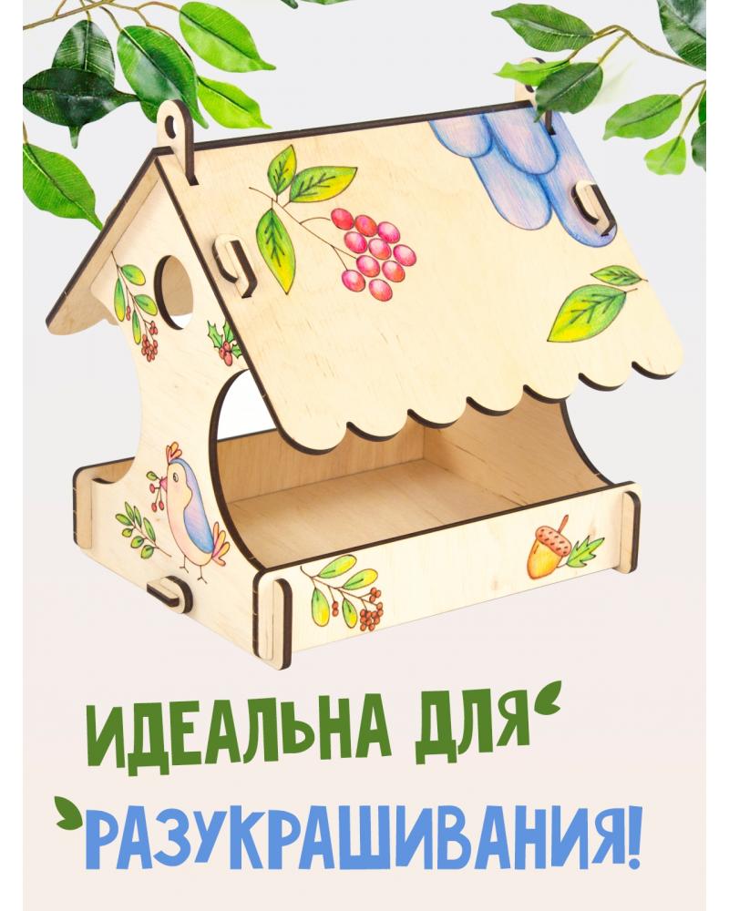 Классическая кормушка для птиц, с нитью для подвешивания, с гравировкой для разукрашивания внутри контура: забота о животных, развитие мелкой моторики, развитие основ конструкирования.