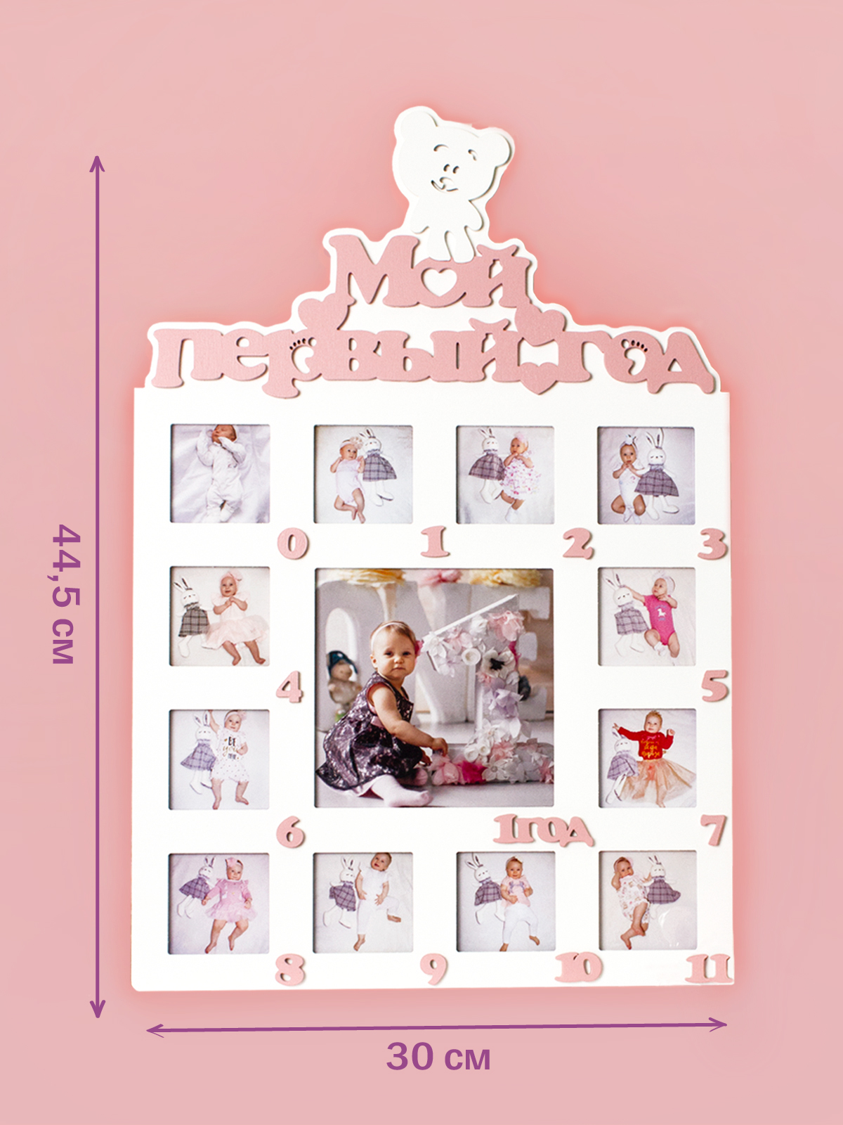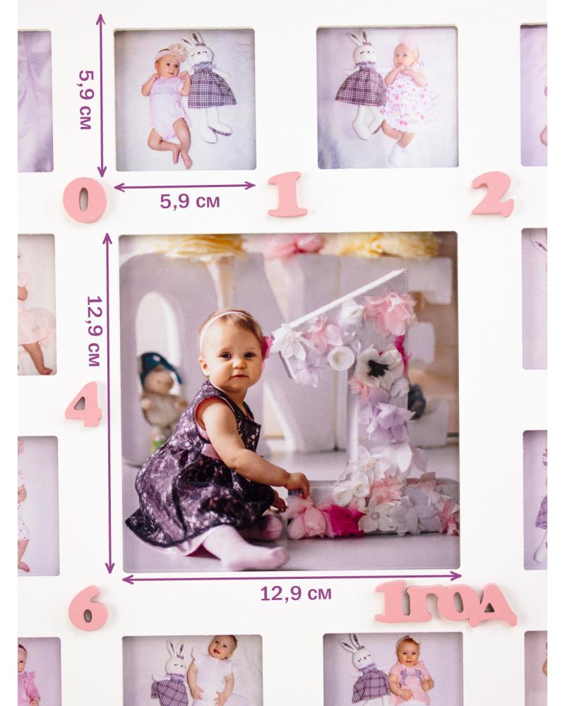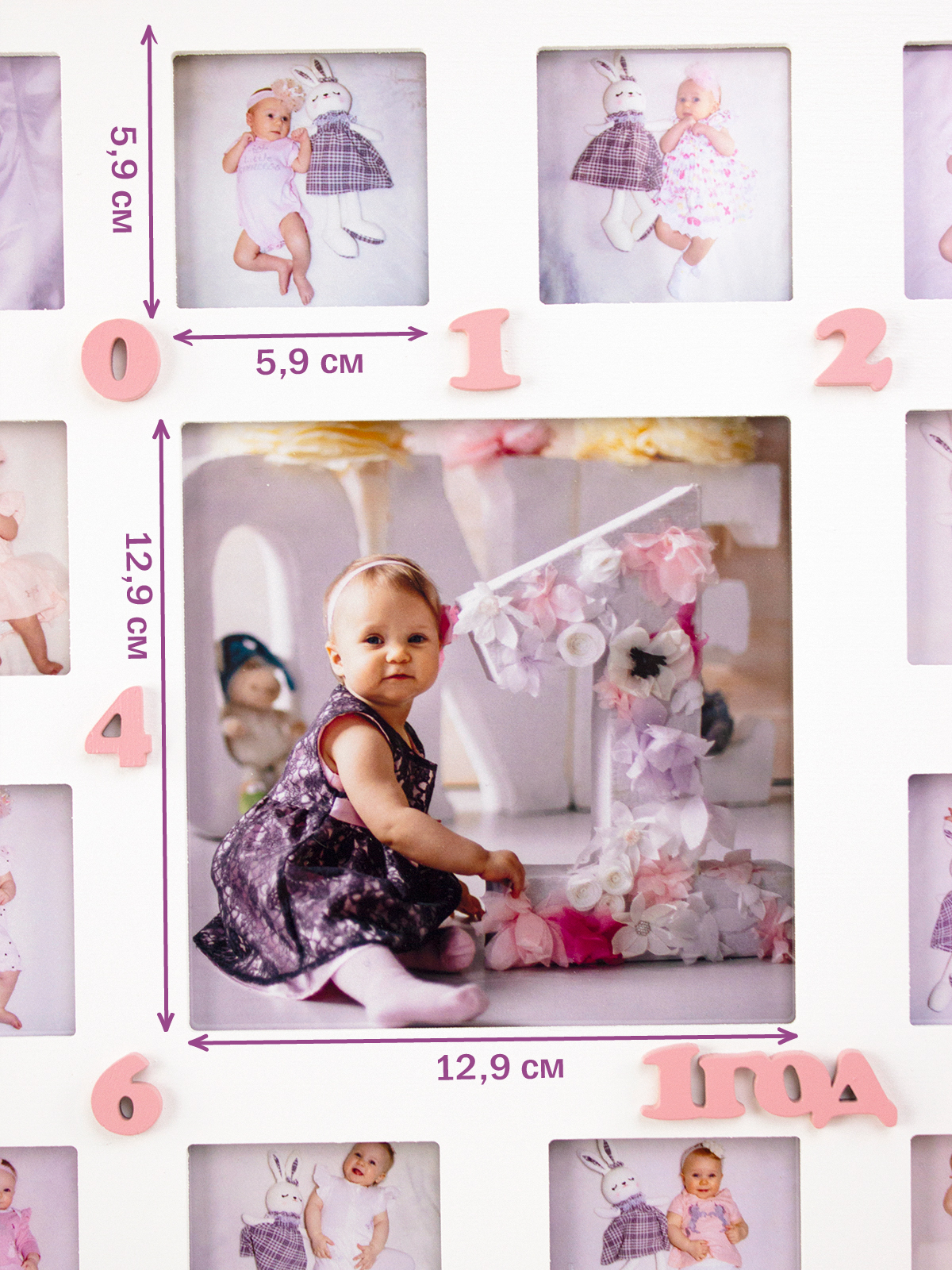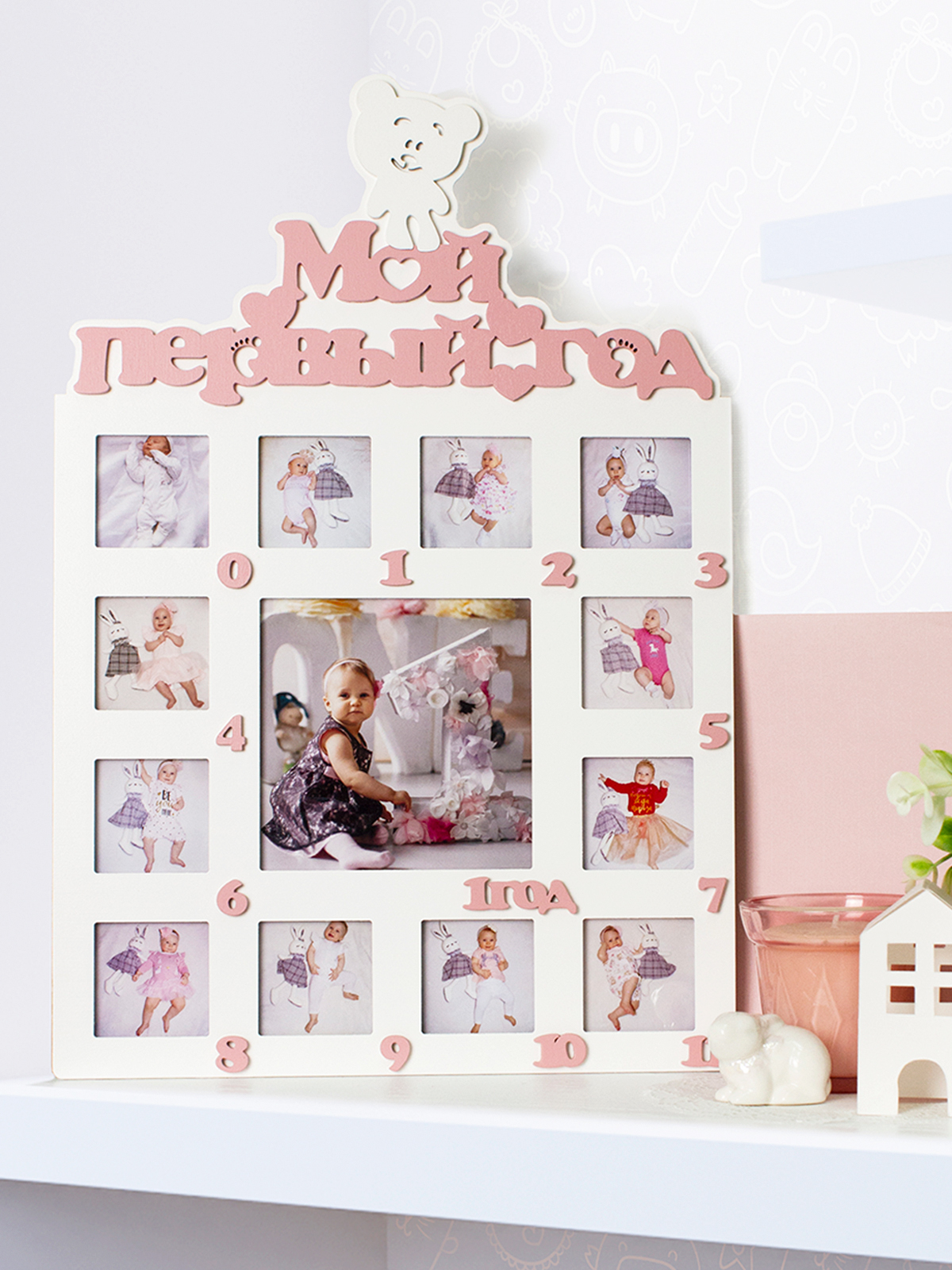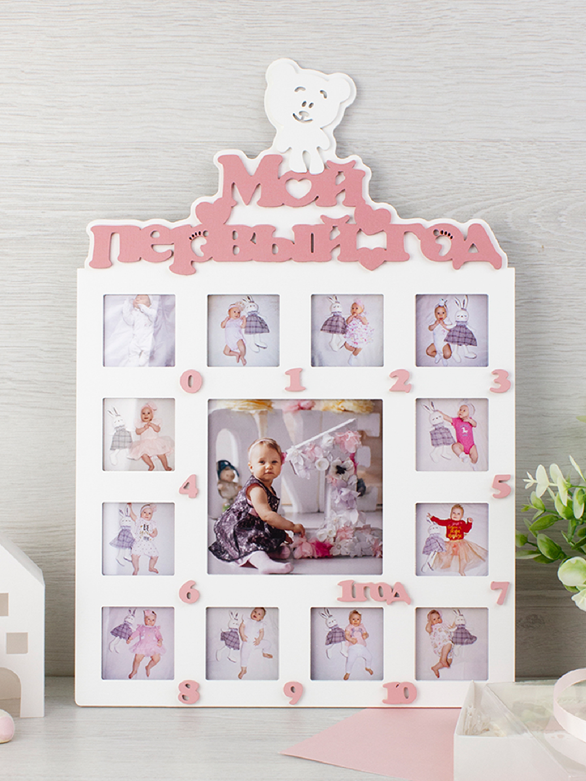 Фоторамка с окошками для фото малыша на протяжении первого года, начиная с рождения.