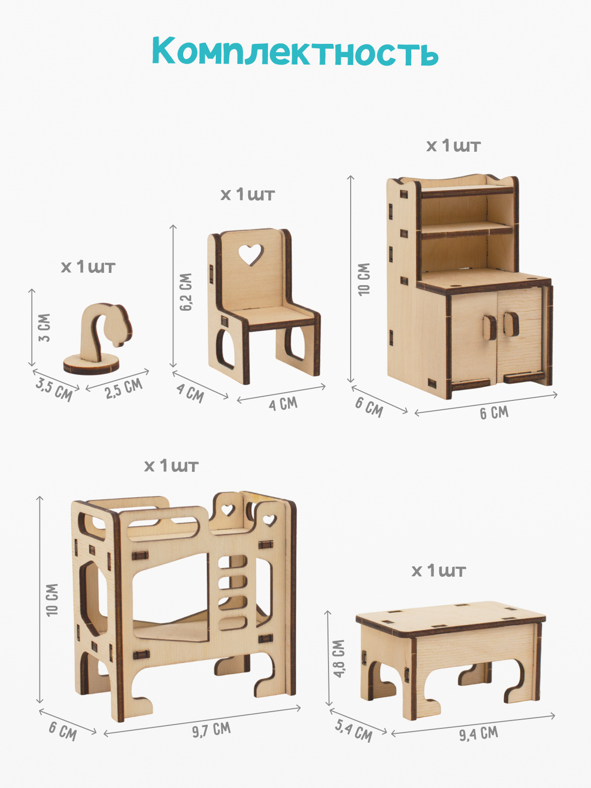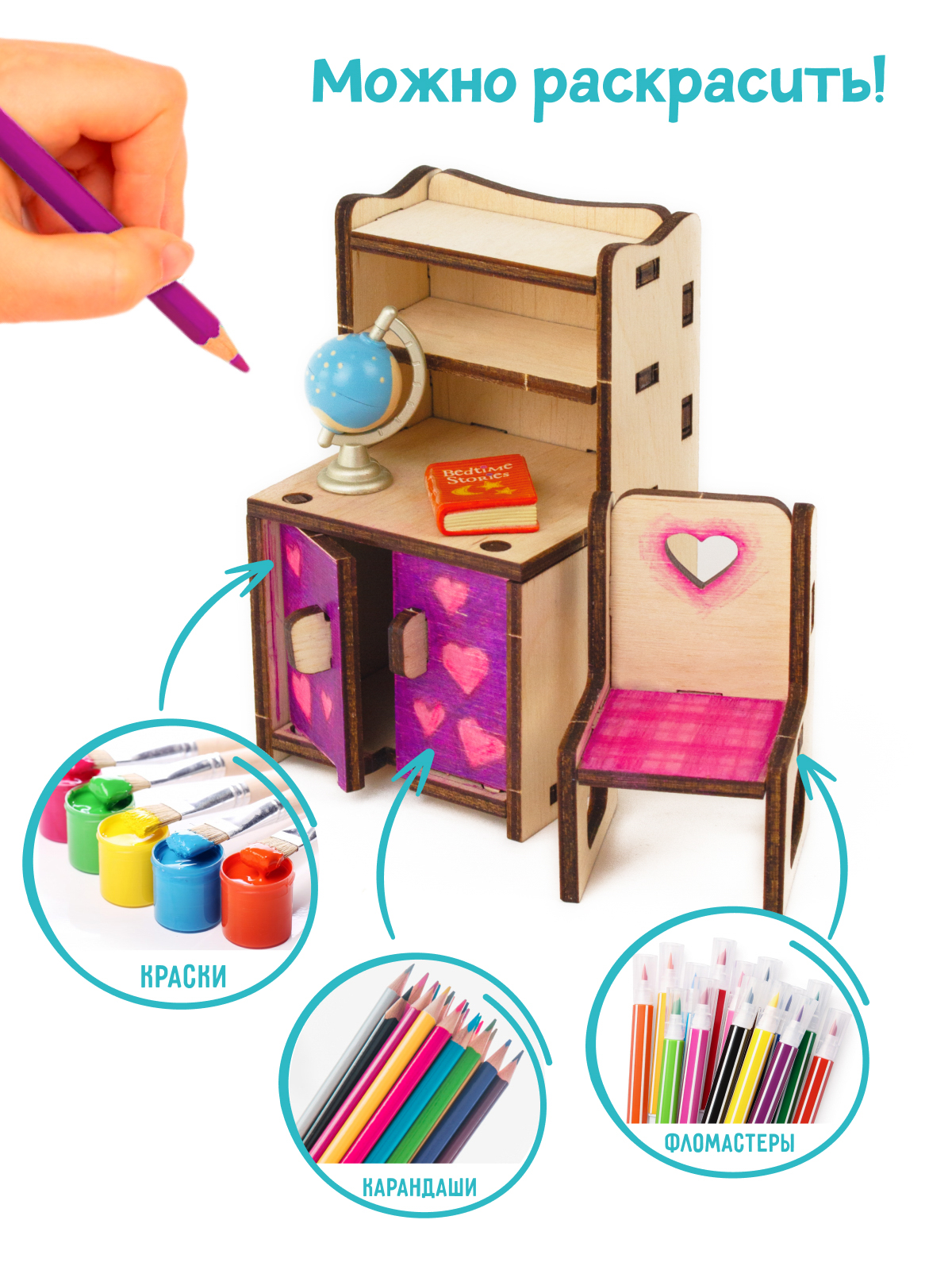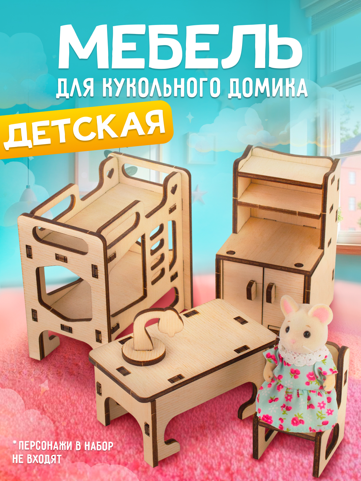 Assemble wooden furniture set "Nursery". Feel like a designer - arrange a room for your favorite characters!