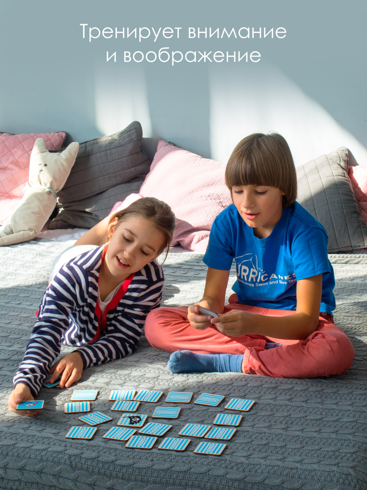 Это быстрая и весёлая игра для детской компании от 2-х до 4-х человек.  В наборе 24 деревянных карточки с сюжетами морских приключений. Игра способствует улучшению памяти и зрительного восприятия, тренирует внимание и воображение.