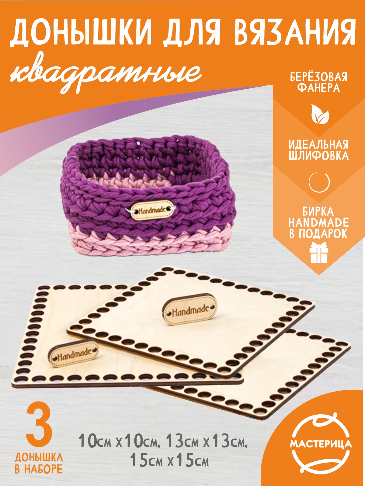 'ЧТО ЭТО? Деревянные донышки для вязания набор WOODY – полезные аксессуары для рукоделия. Набор для вязания содержит деревянные донышки для корзин, органайзеров, кашпо или детских игрушек 3 штуки разных размеров, что позволяет выбрать подходящую основу для любого проекта. Приятный подарок - шильдики из дерева 3 шт, чтобы оформить оригинальный комплект органайзеров для хранения, сделанный своими руками, как подарочный набор. Ручная работа всегда ценится.