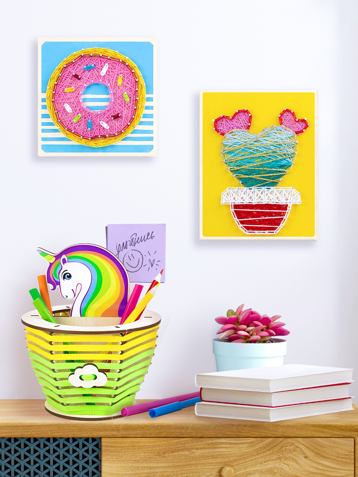 Собранный и украшенный набор для творчества станет ярким и волшебным акцентом для письменного стола.