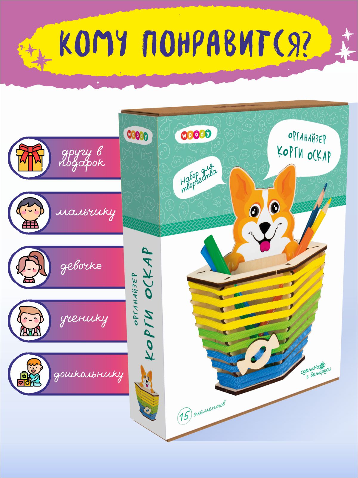 Вдохновляясь набором для творчества, мы получаем не только увлекательное времяпровождение, погружаемся в мир фантазии, но и создаем функциональный органайзер для хранения канцелярии, маленьких игрушек, бижутерии и даже конфет. Органайзер «Корги Оскар» вы сможете приобрести как в розницу, так и оптом.